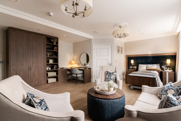 This picturesque home provides person-centred care with over 60 light and airy bedrooms and suites that can be personalised to the taste of individual residents.