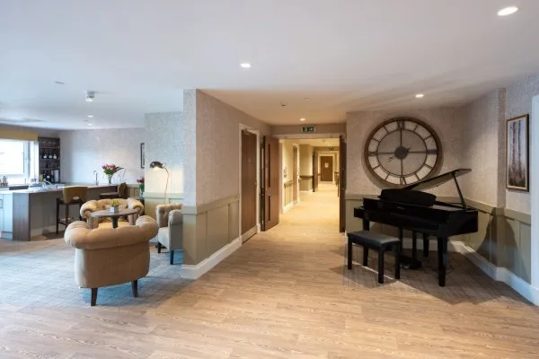 Shared spaces include a cinema room, private dining area, day diner, resident kitchen and servery areas, quiet lounges and an on-site hairdressing salon. A welcoming café and piano bar provide relaxed places to enjoy refreshments and a blether with family and friends.