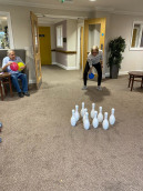 Residents of the skittles league take on the challenge of being top bowler and highest scorer. A fun way to keep fit and enjoy the company of others, always supported by the activity team so residents enjoy all the fun of knocking over the skittles and the hard work of standing them back up left to the team!