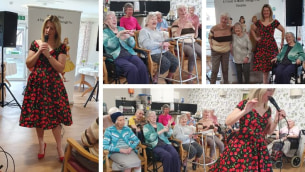 Staff and residents at the purpose-built care welcomed in vocalist Rebecca Done, singing 40's, 50's and 60's classic songs.