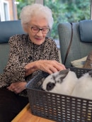 The positive impact animals can have on our lives is huge, and we have particularly found this to be true for the residents of our homes. We work with some fantastic organisations that help us to offer animal therapy sessions within our homes. In these sessions, residents have the chance to meet and interact with all kinds of animals from dogs, rabbits and guinea pigs, to farmyard animals like ducks, chickens, goats and donkeys. We have even enjoyed visits from birds of prey, reptiles and a miniature horse. Not only do our residents love to meet, hold and have a cuddle with these animals, they also really enjoy learning more about them and their care from the wonderful expert handlers that bring them to visit us.