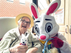 Last weekend, Coppice Lea Care Home in Merstham was full of Easter cheer, with plenty of festive fun for residents and team members alike. The highlight of the day was a surprise visit from the Easter Bunny—activities coordinator Ashley dressed for the occasion and made her way around the home, handing out Easter eggs and sharing smiles with everyone she met.