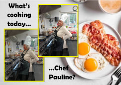 Looks like our chefs might have competition....our manager Pauline is loving her new chefs hat and apron!