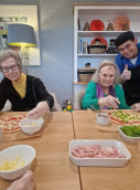 Today, our residents had a fun time making their own pizzas with our wonderful Chef, Steven. A lovely way to get everyone together to create their favourite pizza with toppings galore!