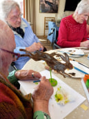 On Saturday, the residents enjoyed Charlotte's art workshop where they painted hares. The idea came from one of our residents, who said she used to enjoy watching the hares run in her garden. This activity sparked lots of conversation and memories as they shared stories of hares and other animals they used to see in their gardens.
