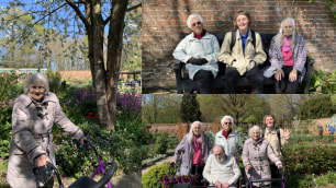 Residents spent time admiring the vibrant spring blooms, reminiscing about their own gardens and sharing memories of flowers they had grown over the years. After exploring the grounds, the group stopped at the café where they enjoyed coffee and cake, all while overlooking the beautiful gardens.